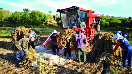 近日,尚义县甲石河、南壕堑片区进入丰收关键期。金黄的黍田间,收割机轰鸣作业,高效完成黍穗收割、脱粒及秸秆处理;村民们忙着配合机器劳作,忙碌的身影穿梭在田地间,定格下秋日丰收画卷。